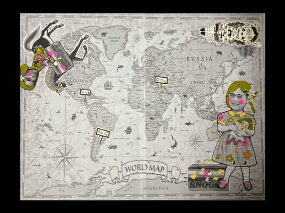 Today, my Snoopy suitcase and Jazmín return to that childhood room to examine the emotional wounds she still carries. From this room, they expand outward, exploring the concept of space and how identity shifts within it.